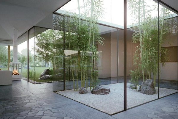 Trong khi không phải là một giống cây bụi, tre cải thiện hình ảnh thẩm mỹ khu xung quanh và phát triển trong môi trường ánh sáng yếu. Những viên đá tạo ra một mặt nền sạch sẽ dưới sàn.