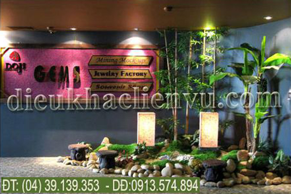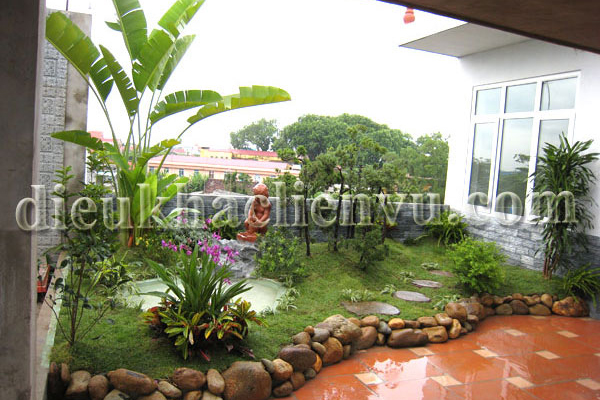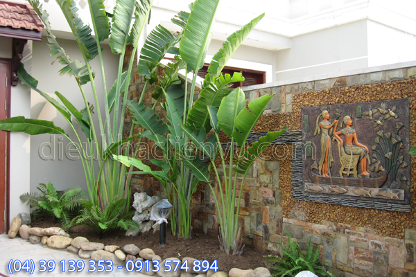 Bố trí cây xanh và phù điêu trong vườn